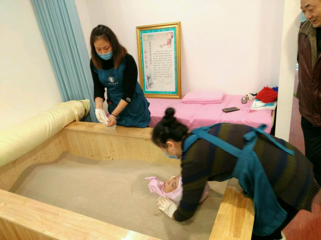 党支部书记薛建泰与月华美容养生会李院长交流并参观砂灸养生操作现场