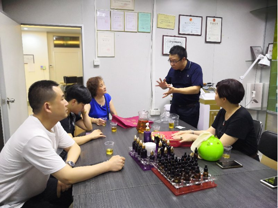 4月27日下午,重庆市保健服务行业协会党支部书记薛建泰、副会长周咏梅、37度健康管理有限公司投资发展部主任高强、听画足道周余等一行在结束中华足道30年香港再出发和中华足道2019年香港国际高峰会与中华足道创千人手足操吉尼斯世界记录表演及“529”爱足日启动等活动结束后,专程看望在珠海的重庆市保健服务行业协会副会长向明涛,并参观考察其在珠海南屏工业园区的企业——珠海佳晶洁化妆品有限公司。