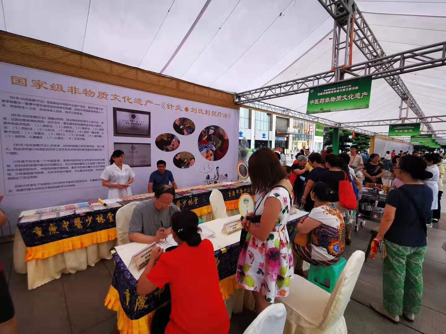 7月23日,由重庆市卫健委、市中医管理局主办的“我和我的祖国——卫生健康70年·中医药健康你我他大型主体活动”在江北观音桥步行街举行。协会艾灸调理专委会主任秦长利和专家委员会主任刘光瑞的中医少林堂一同参加活动。活动期间,参观的市民勇跃体验非物质文化遗产传承项目——艾灸以及刘氏刺熨疗法。协会会长廖家福、党支部书记薛建泰到达现场,看望参加活动的团队和工作人员。