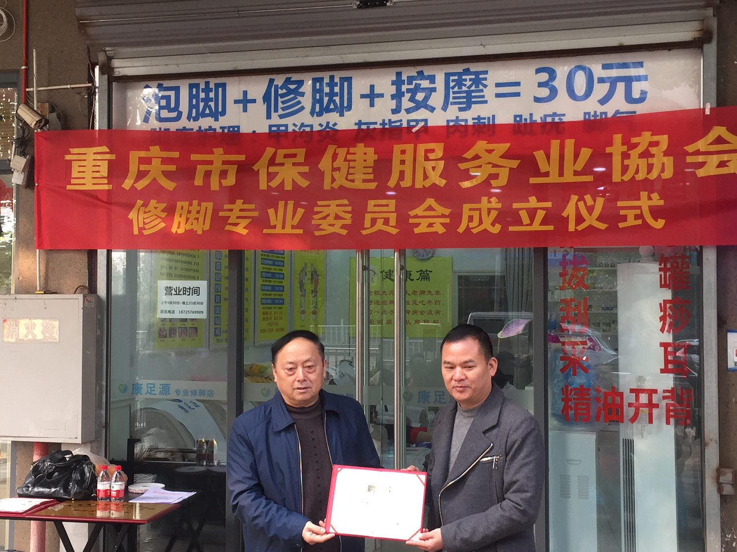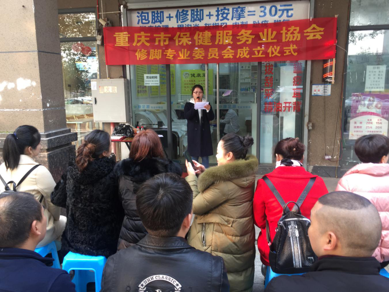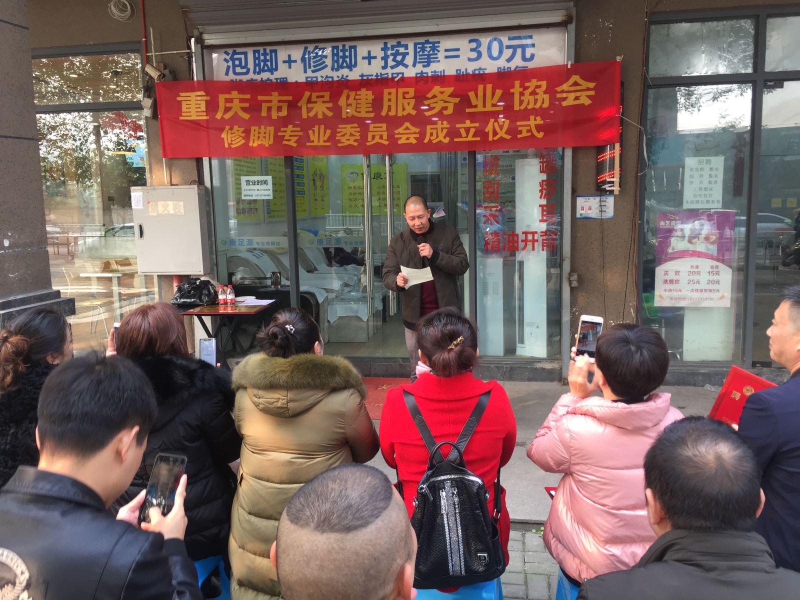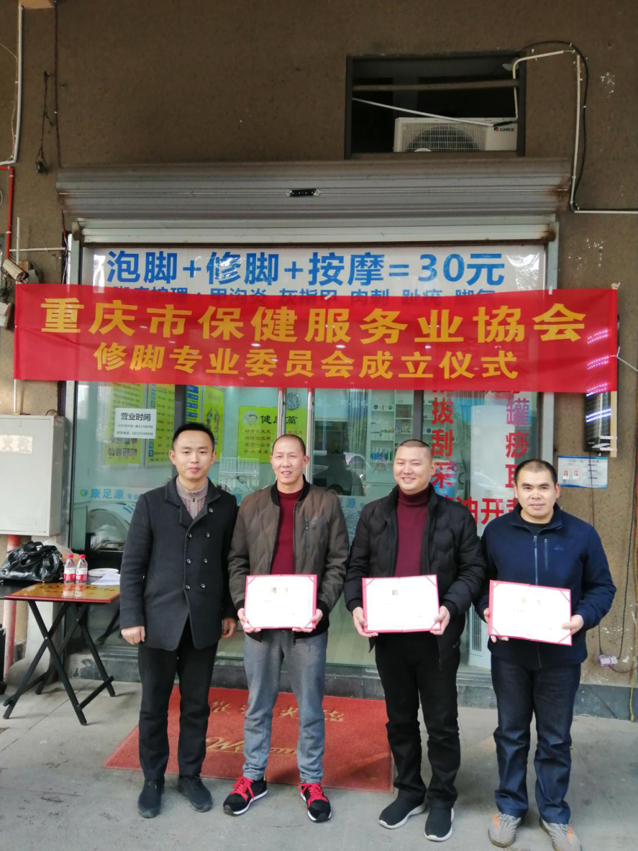 12月10日上午10点,重庆市保健服务行业协会在重庆沙坪坝大学城足康修脚房举行“修脚专业委员会”成立及授牌仪式,仪式由协会秘书李清主持。