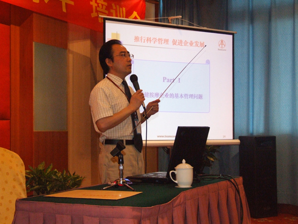 2008年7月5日协会先期举办保健按摩企业“如何提升企业进行科学化管理”的培训,聘请中国管理科学学会咨询部副主任、铁木科尔管理咨询公司总经理余学明博士主讲。