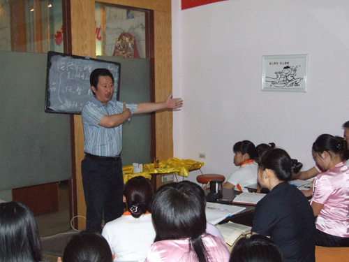 09年5月24日高兴祥副会长为怡梦保健中心的员工作足部按摩的技术培训