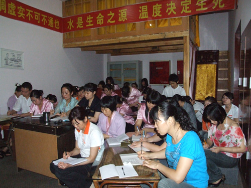 怡梦保健中心的员工受到足部按摩的技术培训提升