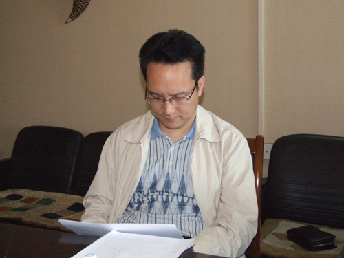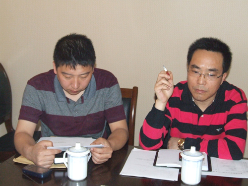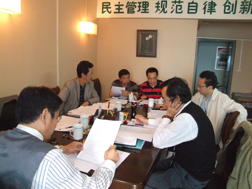 秦长利(右一)同志在换届选举筹备工作会上