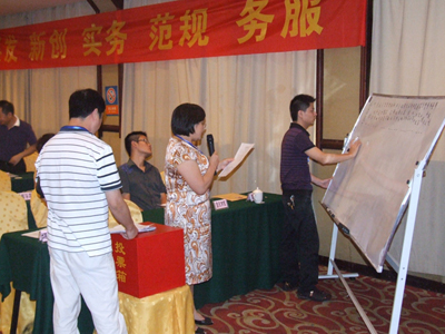 市卫生局、市民政局、市商委的部门领导在主席台上