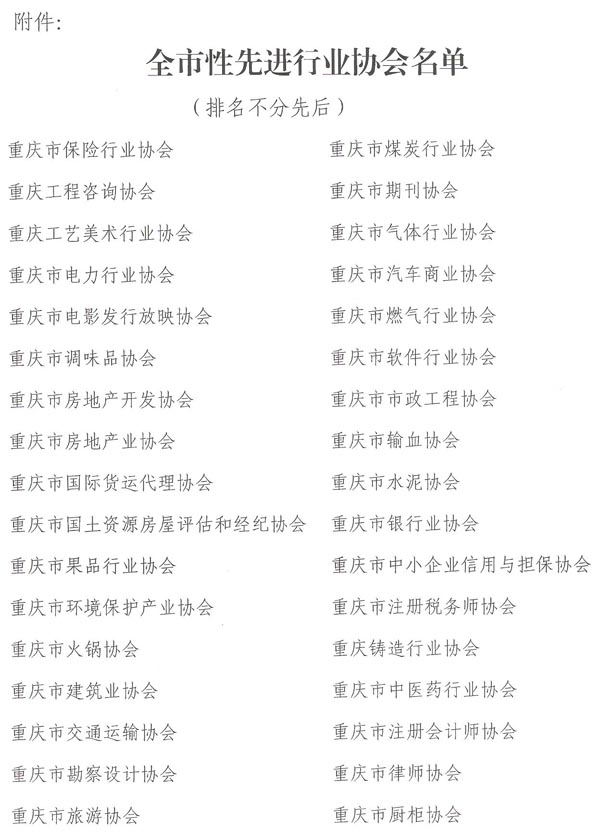 重庆市民政局关于表彰全市性先进行业协会的通报