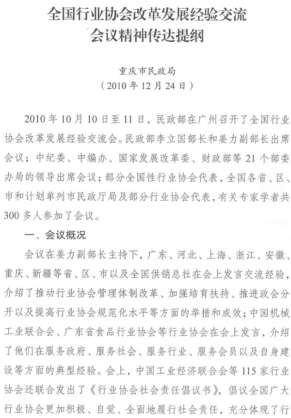 重庆市民政局在全市性行业协会工作会议上的讲话