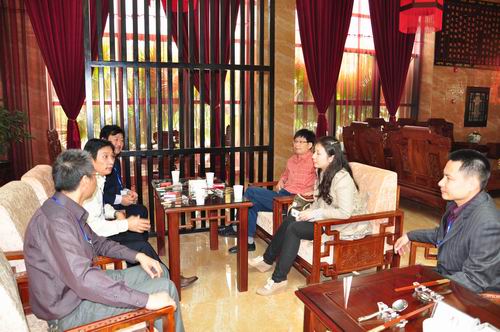 郭家荣会长(左中)与市商委的同志(右二、右三)通报大赛进行情况