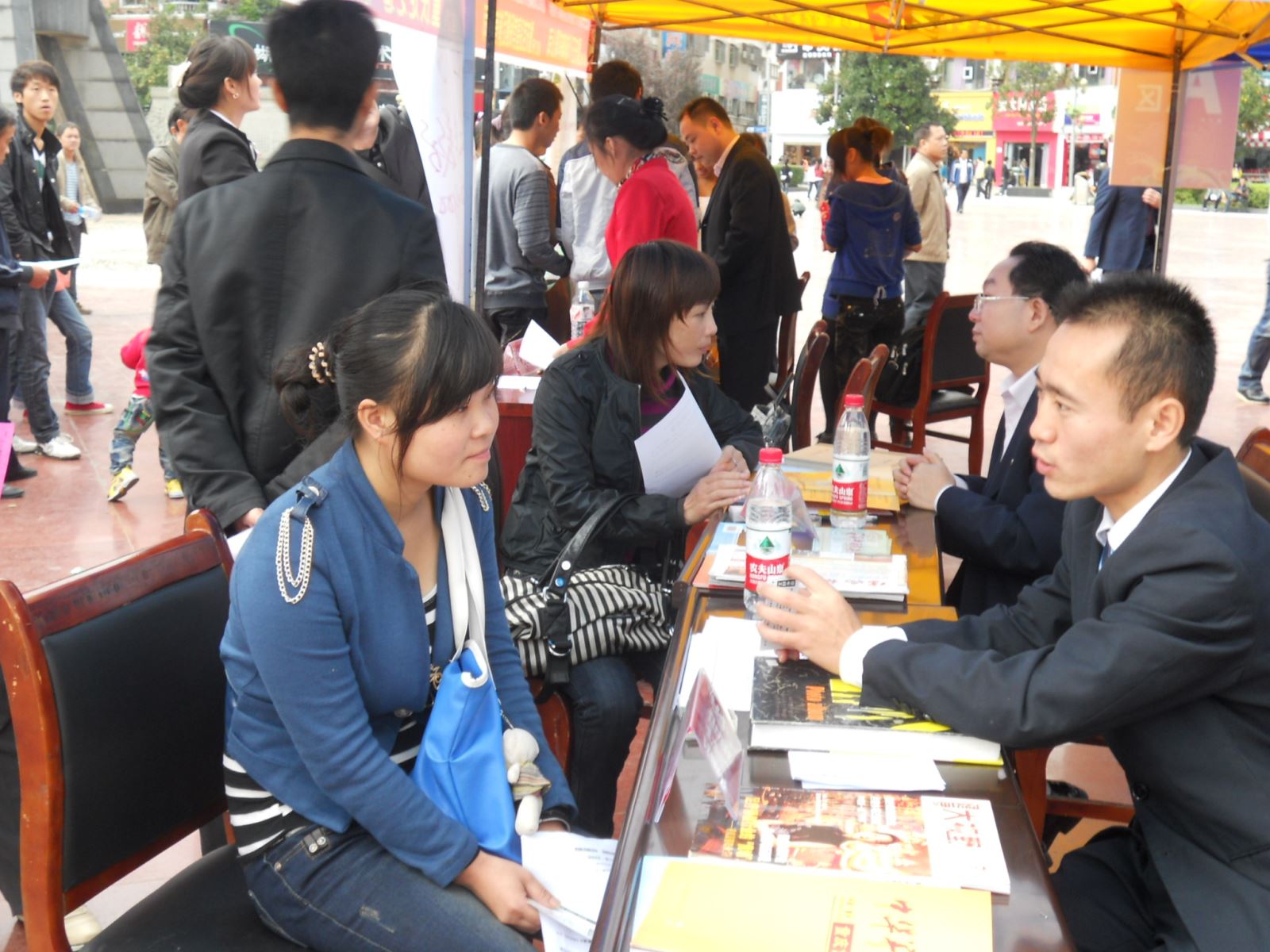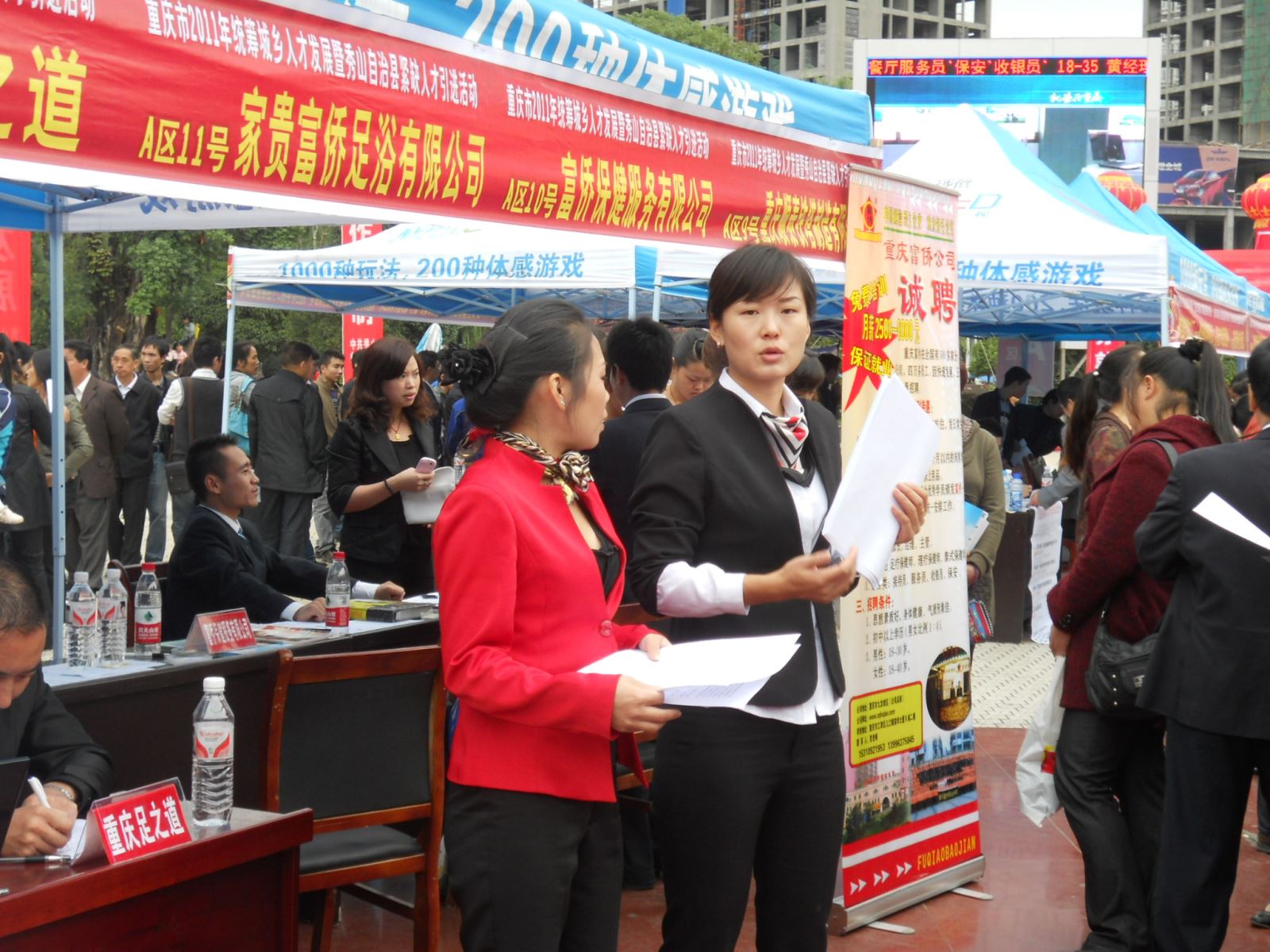 重庆知足道保健服务公司的工作人员在招聘会上