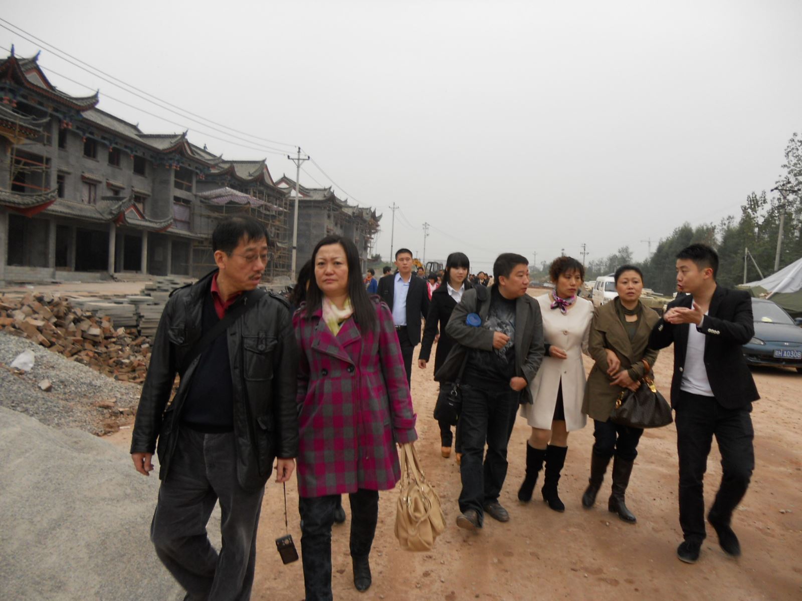 周万涛(左二)副会长等一行人员到古镇项目工地考察