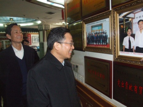 市商委主任周克勤向周慕冰副市长介绍重庆富侨总经理胡芝容女士