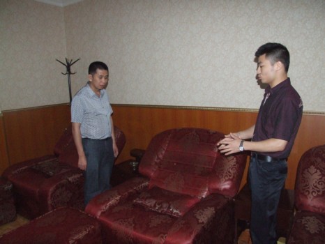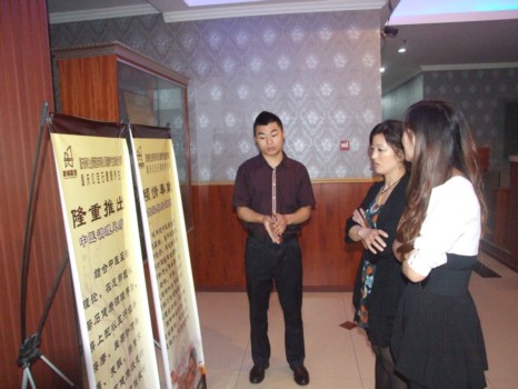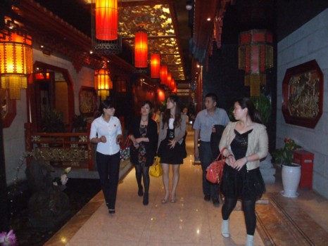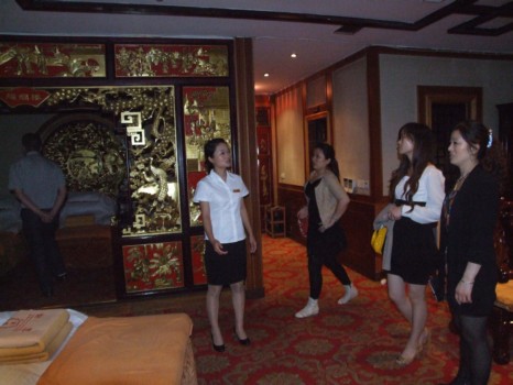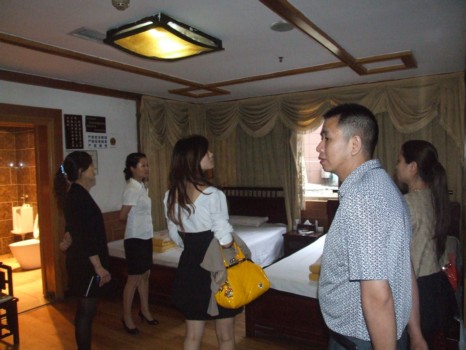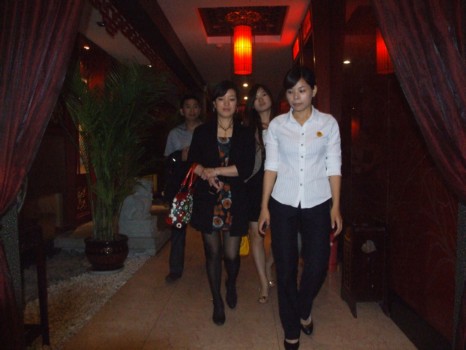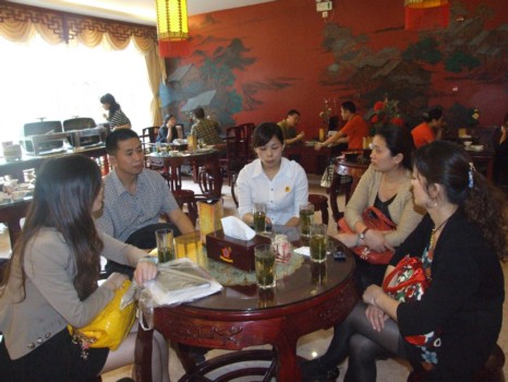 南海足道经营者考察大公馆的红宝石店与景总(右一)交流