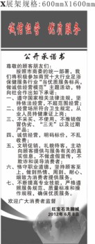 立于大厅的“诚信经营、优质服务”公开承诺书