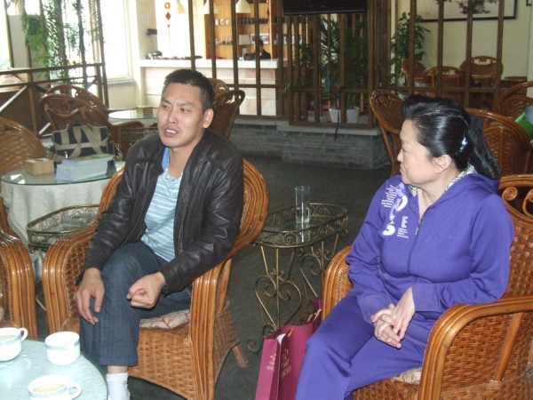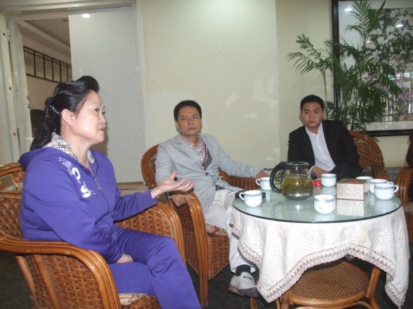 张朝红(左)介绍了目前格兰云天各店所用产品的情况