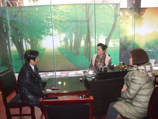 郭会长(左)经体验项目后提出了加强服务项目工作的建议