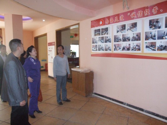 景屏女士在考察合川区南海足道时与经营者交流