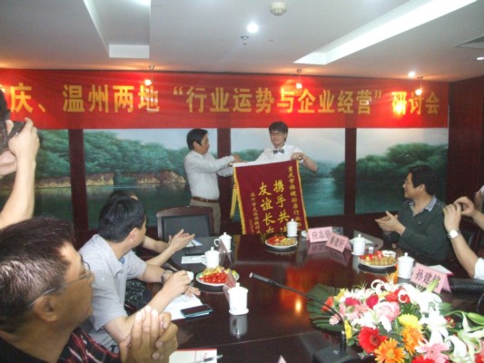 温州协会向重庆协会赠送锦旗、共建友好协会加强交流