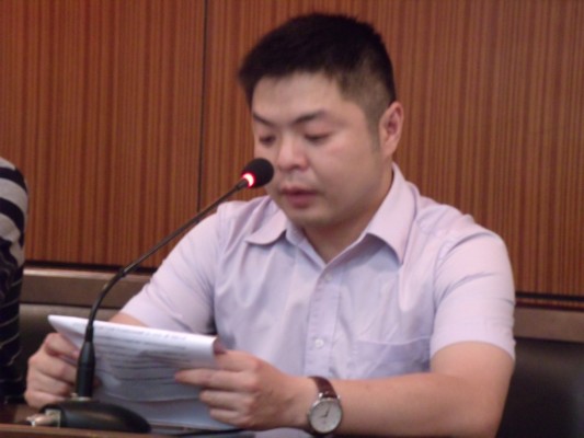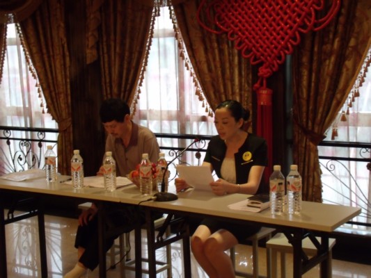 开县商务局的业务处室负责人(主席台左)在会上作动员