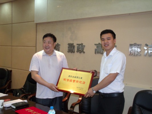 梁平县商务局举行“诚信经营、优质服务”的授牌活动