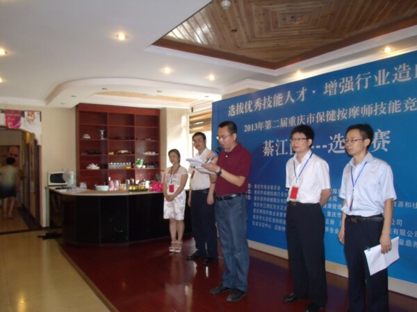 为贯彻落实《重庆市人民政府办公厅关于举办第三届中国·重庆职业技能大赛的通知》(渝府办发〔2013〕75号)和《重庆市人力资源和社会保障局办公室关于申报第三届中国·重庆职业技能大赛外围赛项目的预通知》精神,选拔优秀技能人才,展示技能人才风采,提升企业品牌形象,促进人才队伍建设,推进行业规范发展,在全市营造“尊重劳动、崇尚技能、鼓励创新”的良好氛围,市商委、市人社局决定按照“第三届中国·重庆职业技能大赛外围赛”的要求,举办第二届重庆市保健按摩师技能竞赛,各区、县进行了二届重庆市保健按摩师竞赛活动的选拔赛,旨在选拔优秀技能人才·增强行业造血功能。