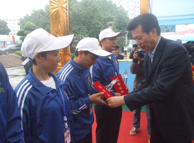 重庆市总工会副主席唐军向获奖选手颁奖