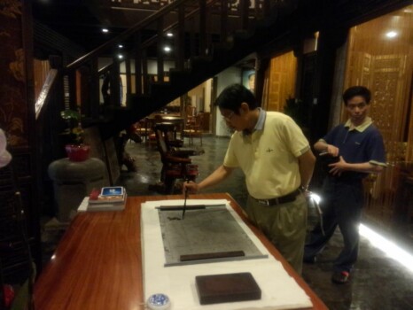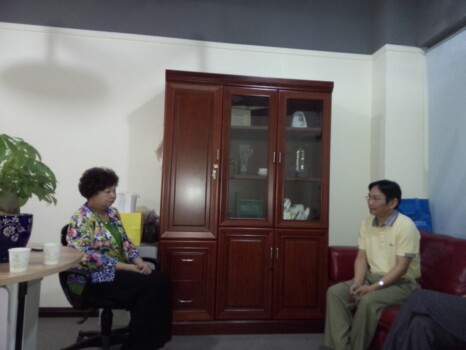 市火锅协会李秘书长(左)与市保健协会负责人在一起交流
