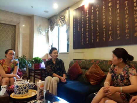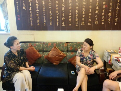 陶春香与太和堂尚真推拿负责人李总(右)一起交流