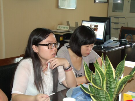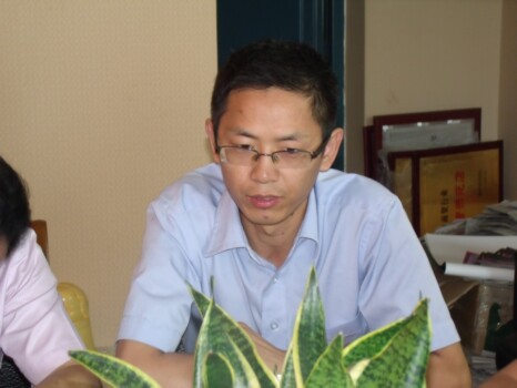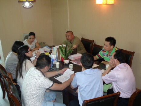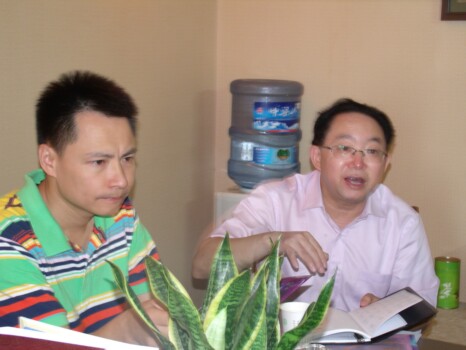 廖峻副会长(左一)、重庆富侨公司张书记(右)在一起商讨