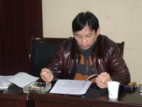 九龙坡区商委业务处室负责人(左)参加讨论