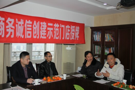 市商委王副处长(右一)对行业诚信创建示范工作提指导意见