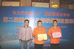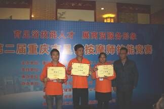 2015年11月18日,由市商委、市人社局主办重庆市保健按摩协会承办的第二届重庆市足部按摩师技能大赛重庆市劳动人民文化宫圆满结束。本次大赛以足部按摩师国家职业标准三级(高级技能)要求命题,共有来自全市各区县选拔的37名参赛选手参加了本届技能大赛的竞赛。其中:有17名理论知识和实操技能均合格者的参赛选手可取得国家职业标准三级(高级技能)职业资格证书;排名前3名的选手,按竞赛职业(工种)命题标准等级颁发高一等级(二级)的国家职业资格证书。经过专家评审,最终结果是:由九龙坡区选送的来自重庆富侨保健服务有限公司大公馆总店的雷琴获得一等奖;由九龙坡和渝北区选送的来自重庆富侨保健服务有限公司大公馆总店的马宏仪和来自重庆思迈足投资有限公司龙湖店的肖强获得二等奖;由涪陵区和梁平县选送的来自重庆足之乐公司总店的蒋丽蓉、来自重庆劲道足浴有限公司总店的张海洋和同单位的朱家波获得三等奖。对此,大赛组委会向一、二、三等奖获得者颁发了荣誉证书和奖金。对涪陵区商务局(人力社保局)及参与协办企业等17个单位给予了表彰,颁发了“优秀组织奖”的奖牌。