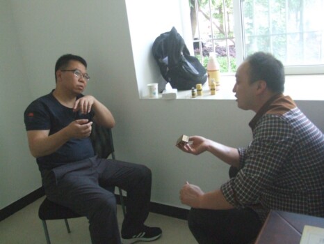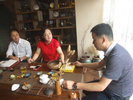 丽草源--品牌按摩精油的创始人向总(右)与重庆著名品牌--劲道足艺的牟总一起交流