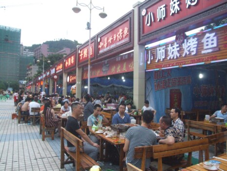 向总与当地的同业协会负责人一起品尝有名的----万州烤鱼