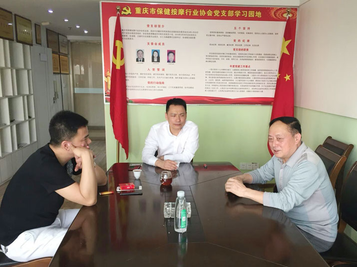 2018年4月18日下午,会长廖家富、党支部书记薛建泰、副会长牟伟在会员之家和秘书处办公室交流协会工作,牟伟副会长分享了他去上海参加保健行业一个峰会的感想和感受。