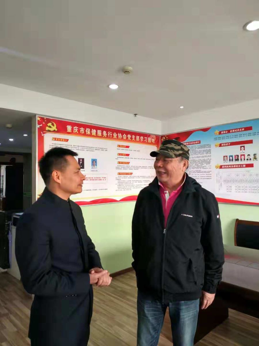 2018年10月31日下午,“中华足道”创始人、足道标准制定者、行业泰斗杨茗茗教授和其弟子李采恩来到重庆市保健服务行业协会,与会长廖家福、党支部书记薛建泰及秘书处工作人员进行了如何发挥“中华足道”在保健服务行业作用的交流;分享了保健服务企业“技术是根、服务是本、文化是魂”的经营理念。对协会更名给予了充分的肯定,希望协会要“有人做事、有钱做事、要做实事”,将重庆市保健服务行业协会办成具有重庆特色和影响力的协会。