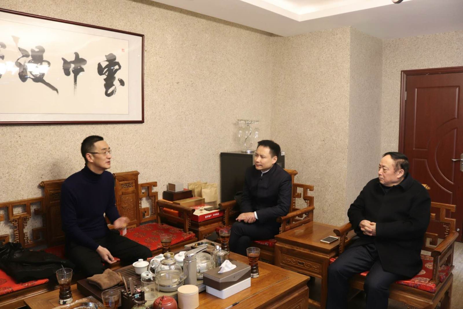 会长廖家福、党支部书记兼秘书长薛建泰走访云中漫步足浴保健有限公司