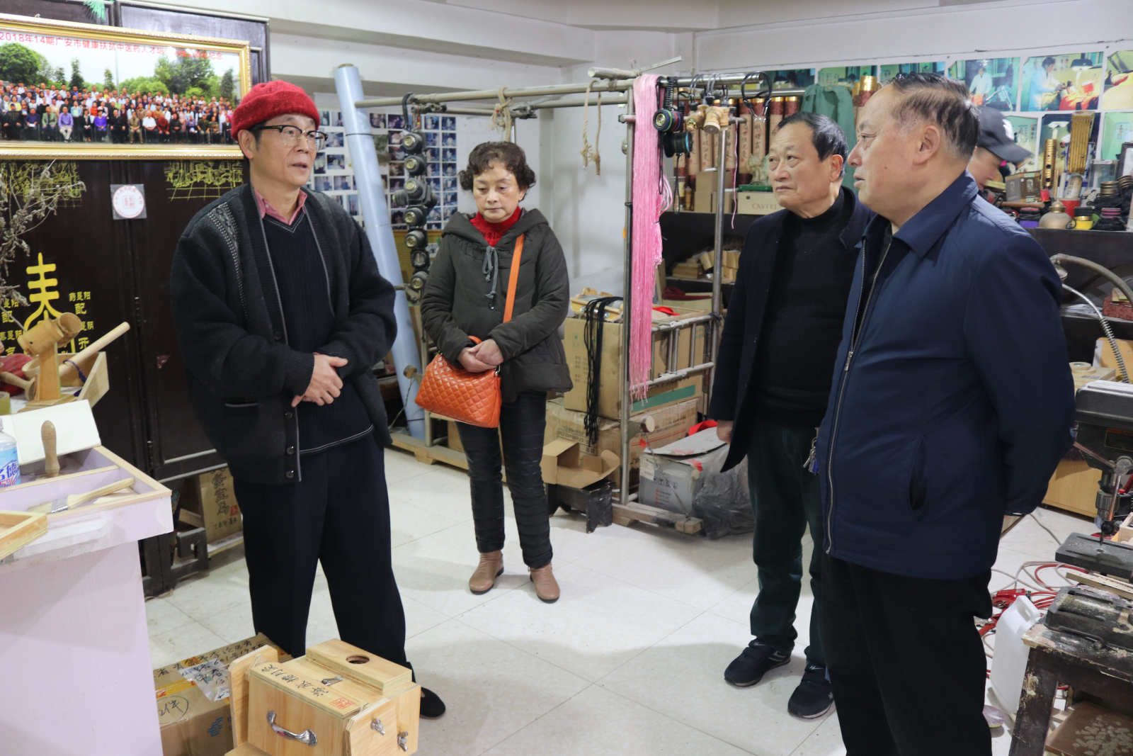 民间灸具传承人秦长利(左一)介绍灸(具)的适用功效