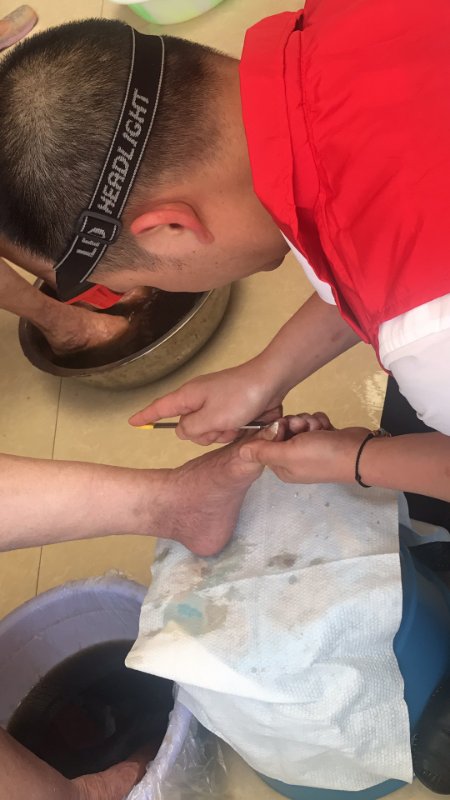 刚开始的时候,我和孩子心里都有一点点抵触的,以为早上4点多才下班8点多就要起来了,孩子本想在家耍游戏,也是被我硬拉来的。但是在看到第一位老奶奶的时候我的那种抵触就没有了!我感觉他们都特别需要,有些老人需要按摩修脚,有些需要梳头采耳,还有些需要语言的关怀,能为他们服务 我觉得比上钟赚钱更有意义!我给老人服务的时候就给孩子言传身教树立了好的榜样,年轻人就要这样对待老人。后来小孩子在我的影响下夜也主动参与给老奶奶老爷爷服务!老爷爷老奶奶都笑着夸孩子真乖,我听了心里特别高兴!大儿子还在跟我说回家还要给他的太爷爷太奶奶也洗洗脚!捶捶腿!