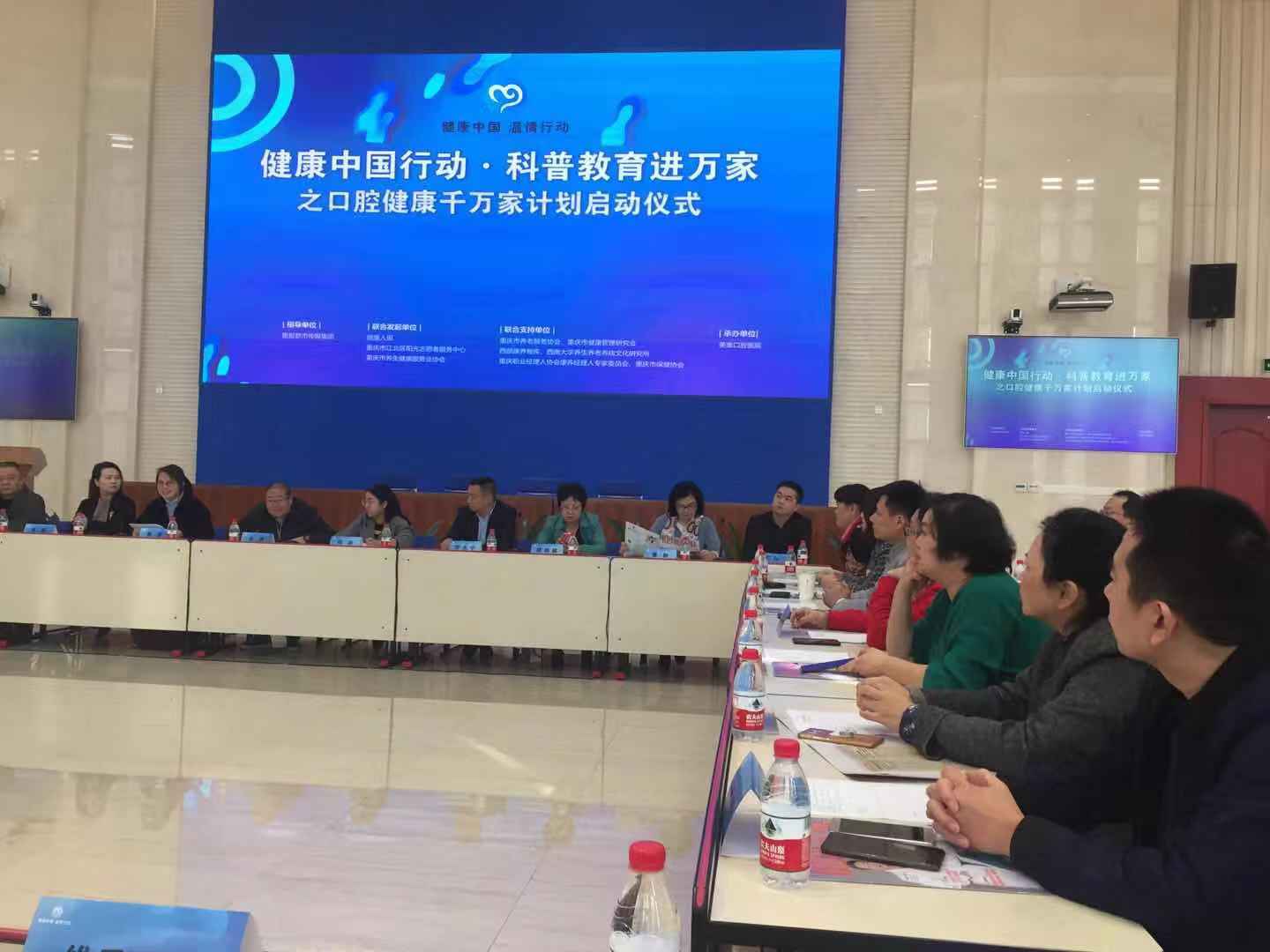 为开展全民健康教育,提升全民健康素养,11月15日上午,“健康中国行动•科普教育进万家之口腔健康千万家计划”,在重庆日报报业集团新闻发布厅正式启动。协会会长廖家福、副秘书长周中余参加了启动仪式。