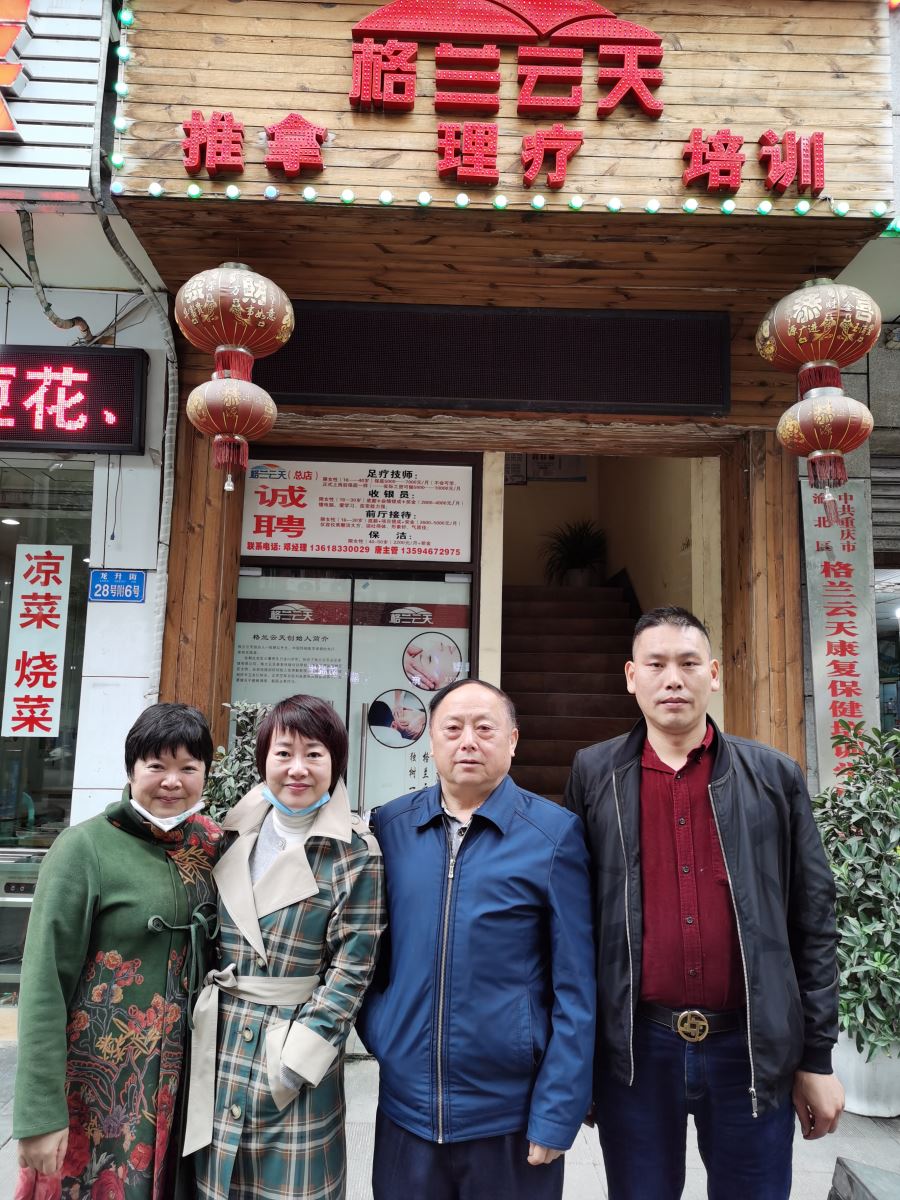 4月3日,协会党支部书记兼秘书长薛建泰带领协会秘书处秘书李清走访重庆格兰云天职业培训学校,拜望了格兰云天董事长张朝红。这是经疫情复工后,秘书处第四次走访活动。到达位于渝北区两路龙升街的格兰云天总店,协会理事格云兰天董事长兼格兰云天康复职业培训学校校长张朝红正在为小朋友进行推拿按摩服务,他熟练的手法为小朋友带去了欢笑,解除小朋友病痛,与小朋友的亲属亲切交谈,其乐融融。协会领导与格兰云天团队就目前疫情期间,就企业如何加强疫情防治,企业如何提升员工技能,以及行业协会如何与职业培训学校相互合作做好培训工作进行了商谈。