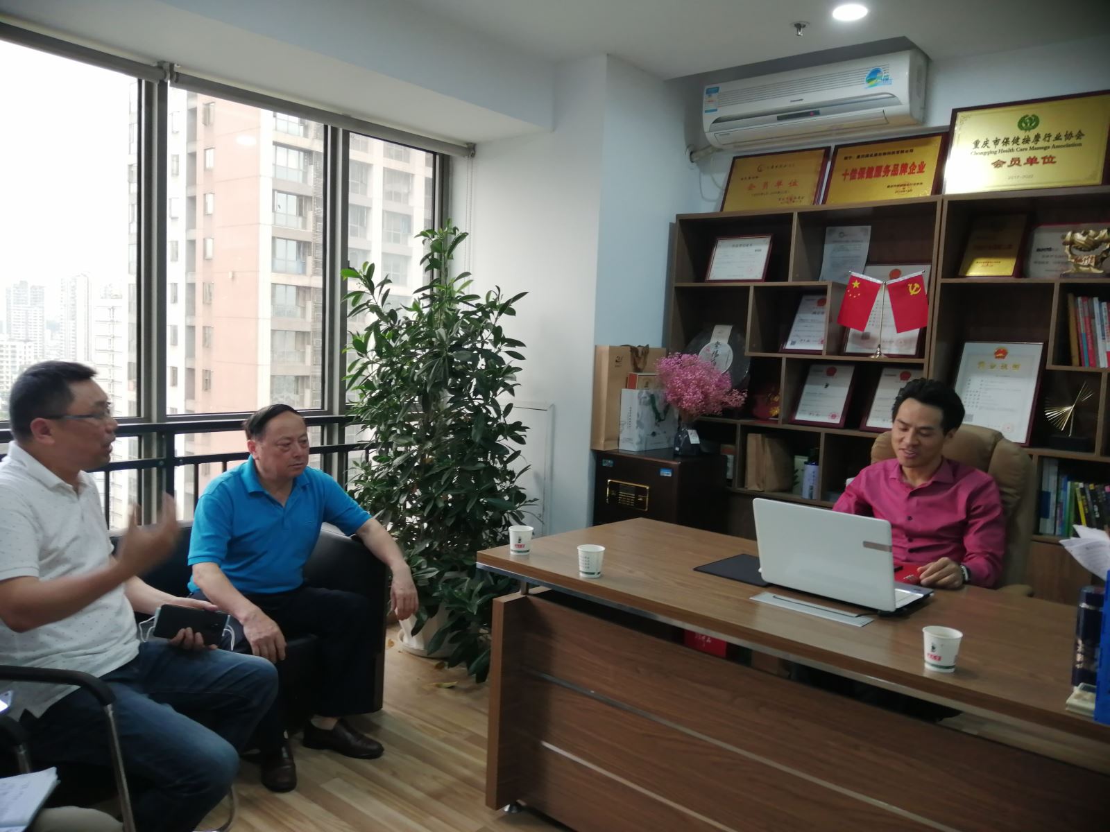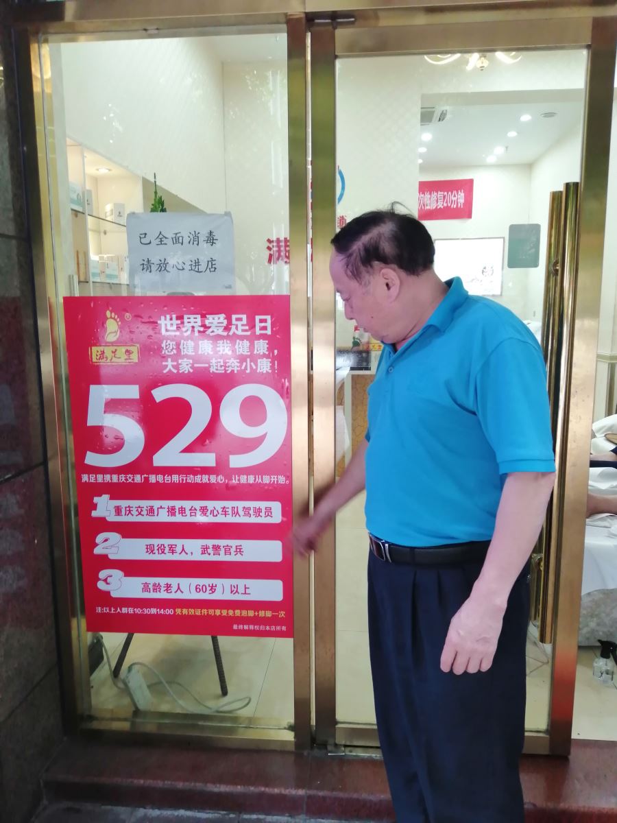 5月25日是协会发出保健服务行业开展5.29爱足日宣传活动周的第一天,协会党支部书记薛建泰和协办单位阳光助老服务中心主任余松涛一道,下午专程到承办为交通广播电台爱心车队驾驶员,免费修脚服务的行业品牌企业满足里位于紫都星座b幢19楼总部,了解企业“5.29爱足日宣传周活动”开启情况,并参观了位于紫都星座附近的实体店。满足里总经理张启军介绍了开展“5.29爱足日活动宣传周。