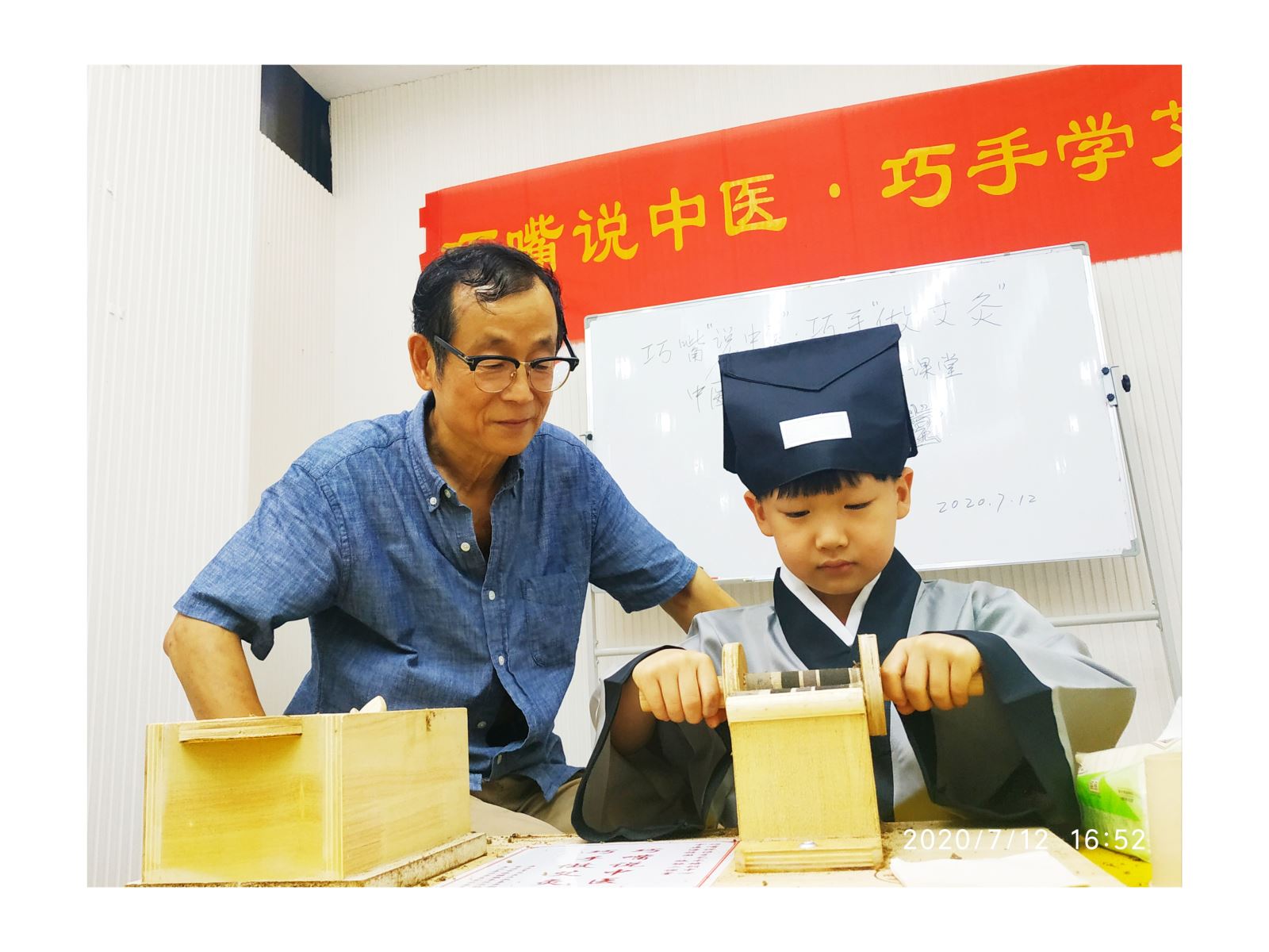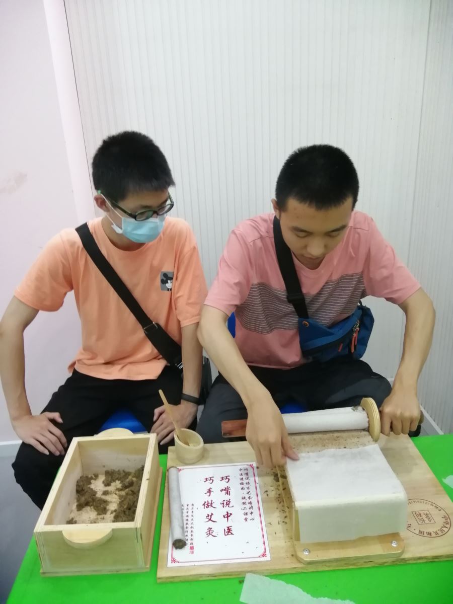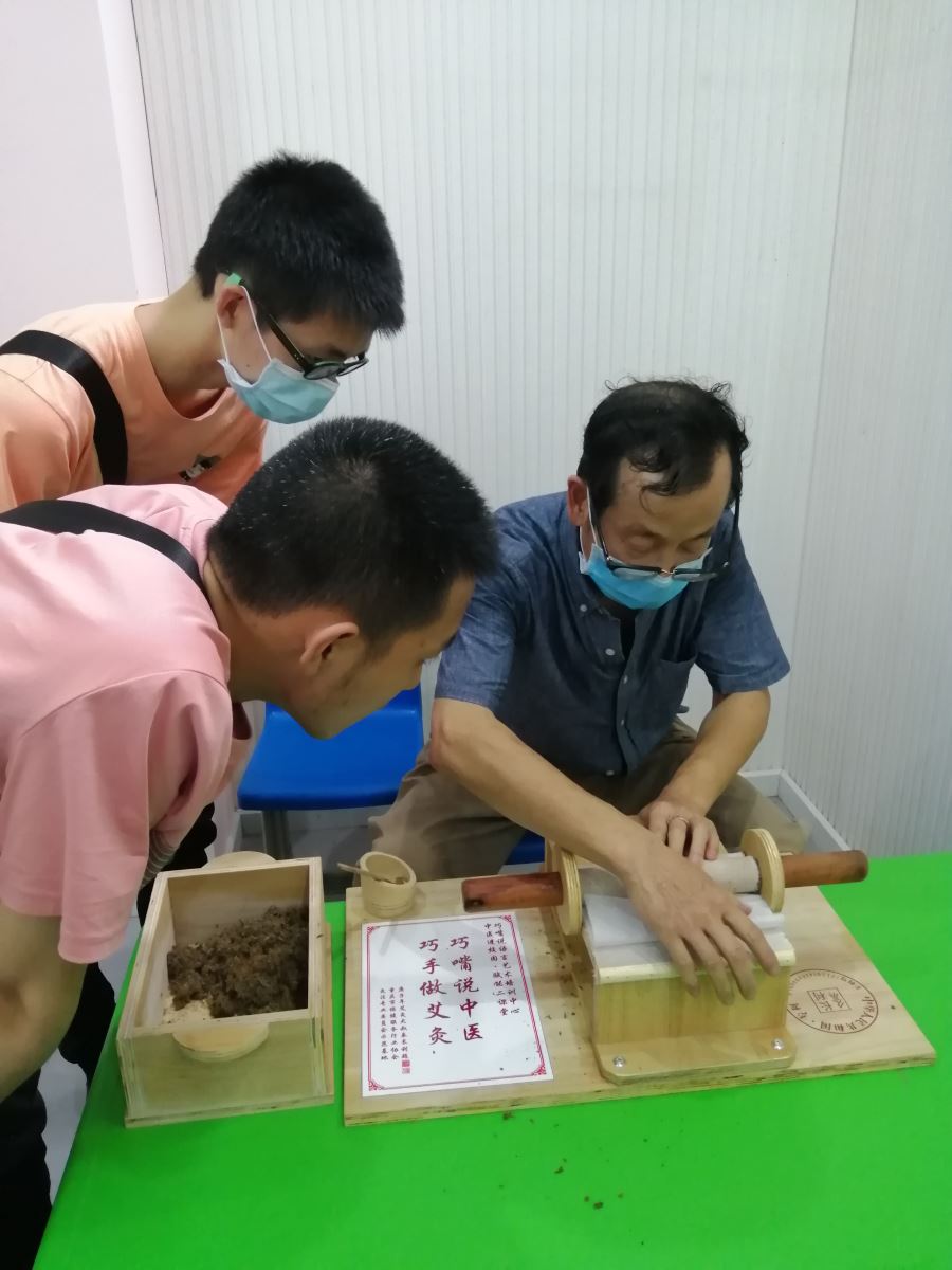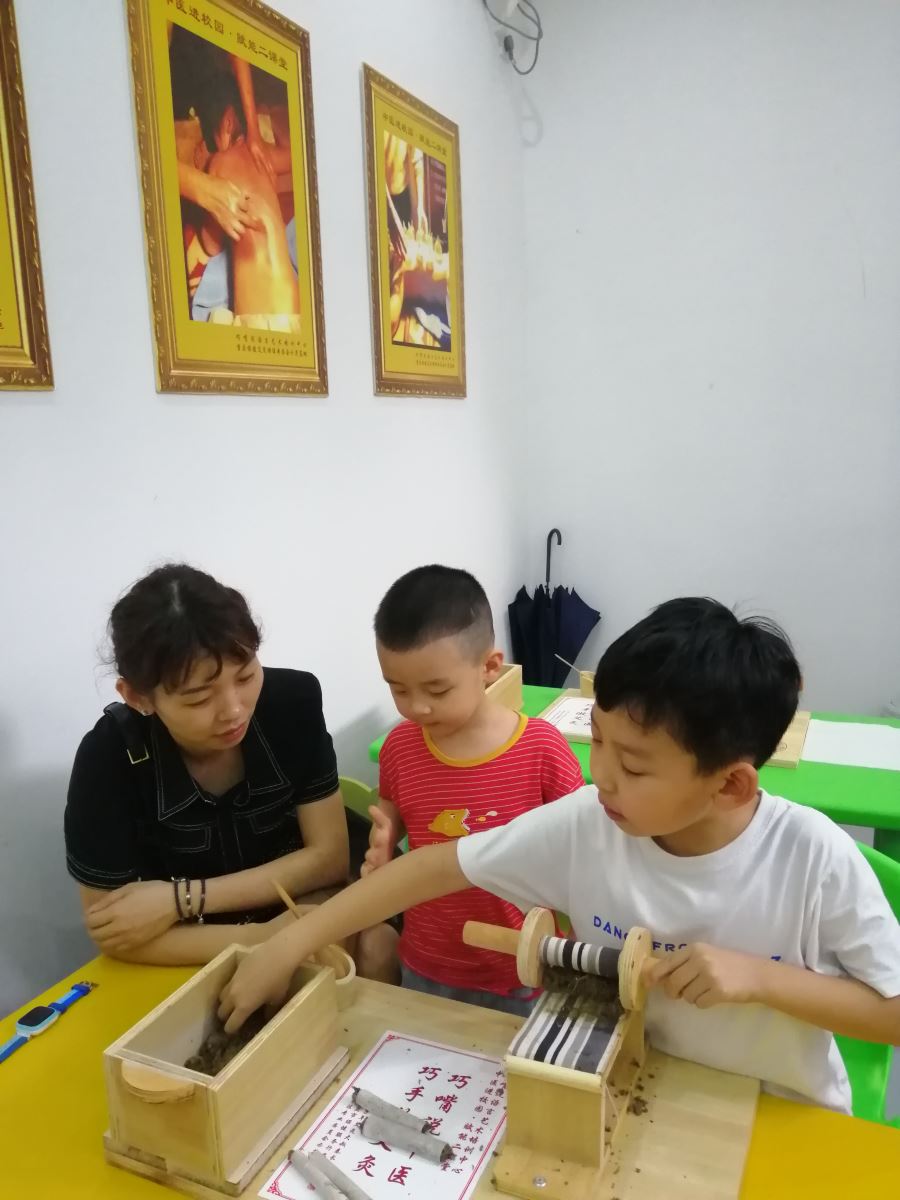 7月11日下午在南岸区万达广场重庆巧嘴说语言艺术培训学校里,来自巧嘴说语言艺术培训学校5岁至15岁的9位小朋友,在学校教室里,由重庆市重庆市保健服务行业协会艾灸调理专业委员会主任秦长利和专业委员会艾师灸付,向小朋友们讲述中医艾条的制作方法和技巧,秦长利和艾炙师付细心的讲,手把手耐心教,小朋友们认真的学,仔细的做,陪伴的家长同样感接受中医和工匠培养教育,达到既教小朋友,又使家长受到教育。