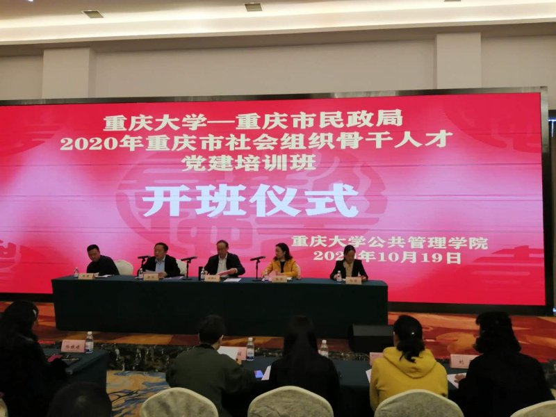 10月19日上午,举行开班仪式,开班仪式由市民政局社会组织管理局局长李洋主持。重庆大学公共管理学院党委书记张玲首先致辞,代表重庆大学对各位学员的到来表示欢迎,同时简要介绍了重庆大学及公共管理学院概况。市民政局党组成员、一级巡视员、社会组织综合党委书记关惜分同志代表局党组作开班动员,阐述了本次培训的目的、意义,对搞好培训学习提出了具体要求。