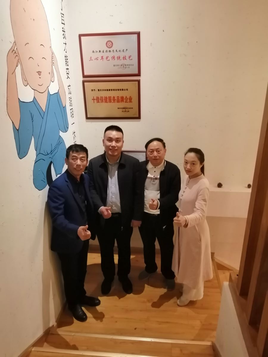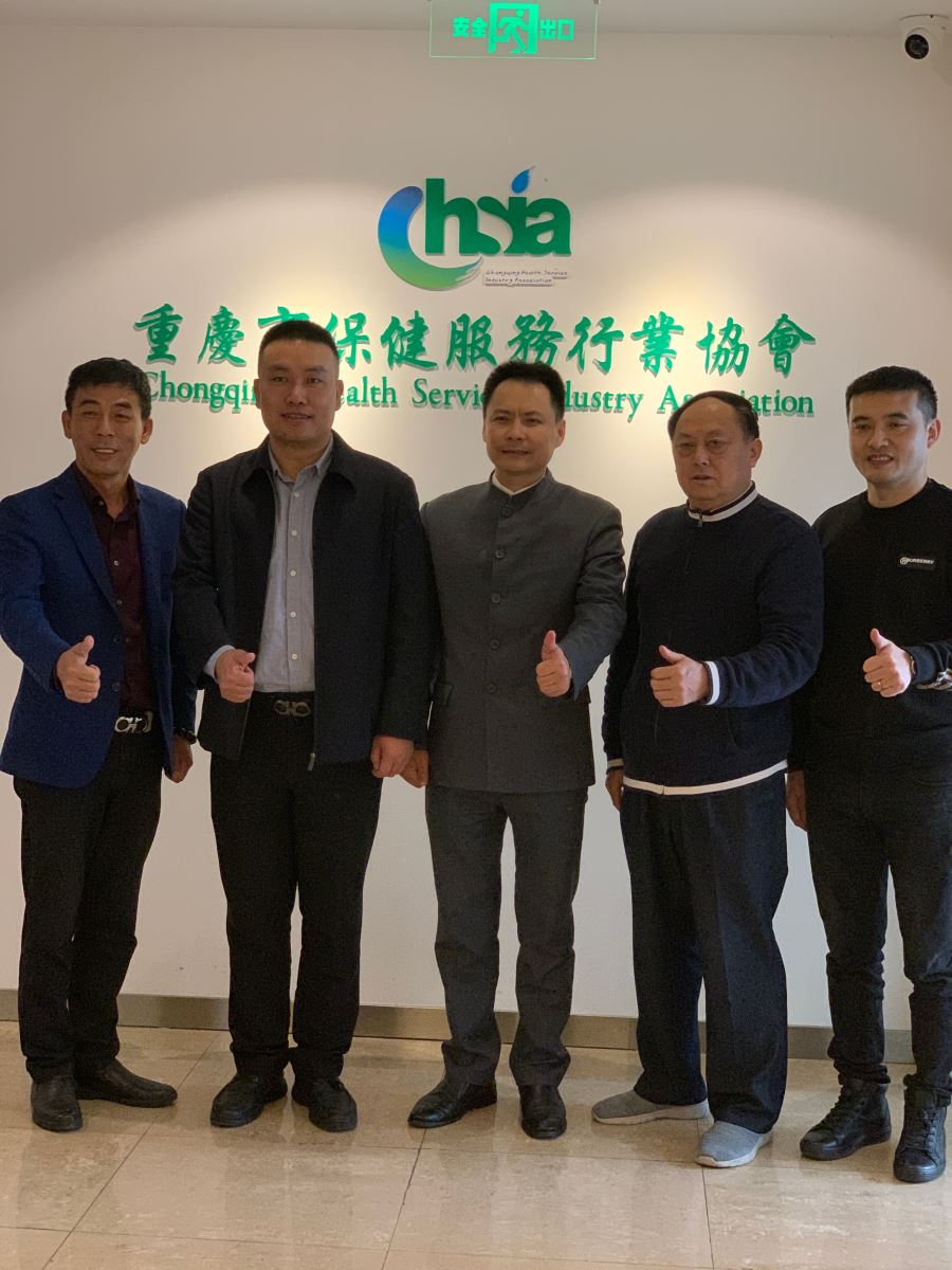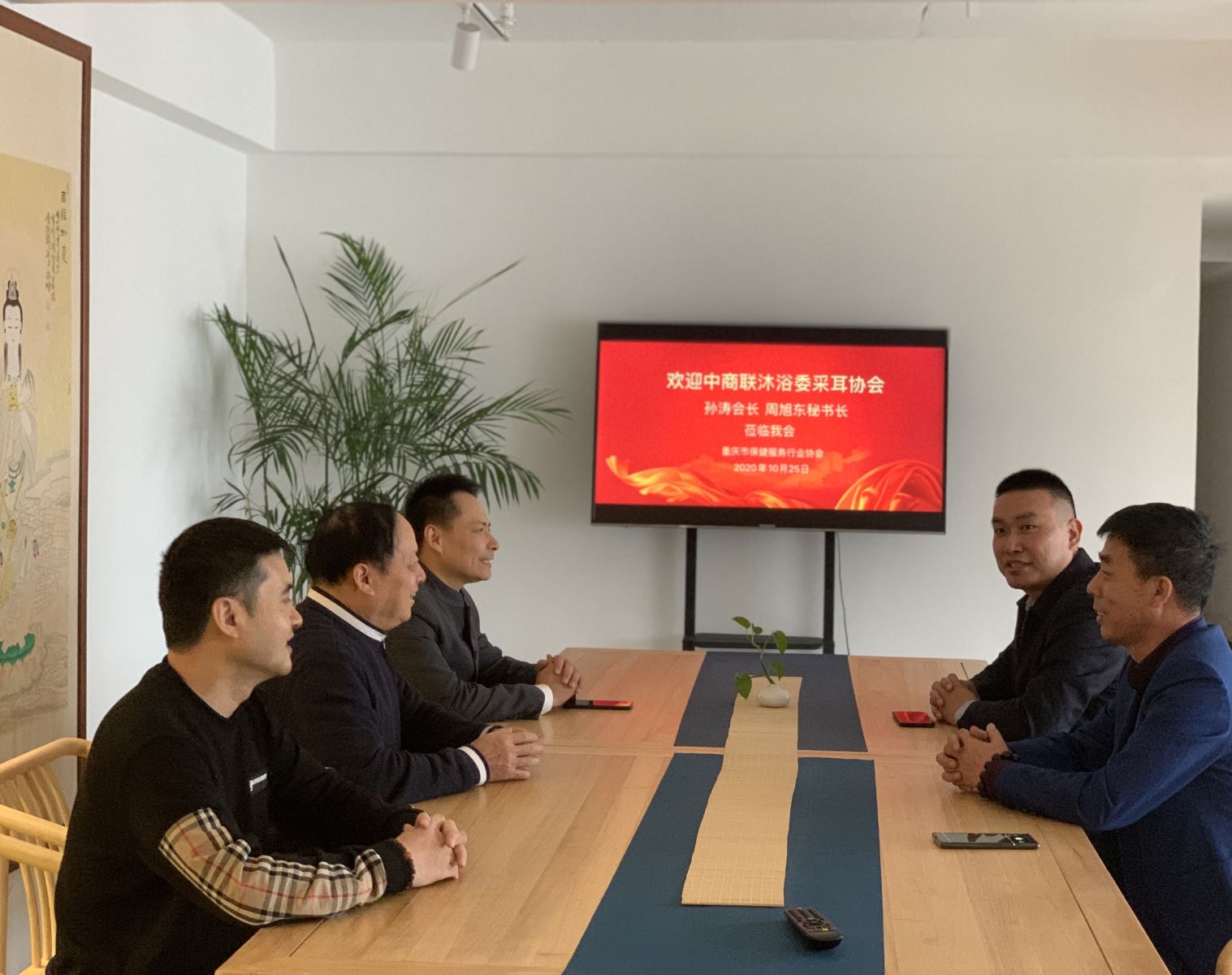 2020年10月25日,中沐委采耳协会会长孙涛、秘书长周旭东,从安徽合肥来到重庆市保健服务行业协会,协会会长廖家福、党支部书记薛建泰、副会长向伟民委派陈功水热情接待了孙涛会长和周旭东秘书长。