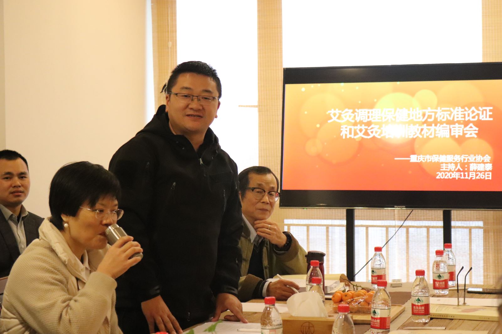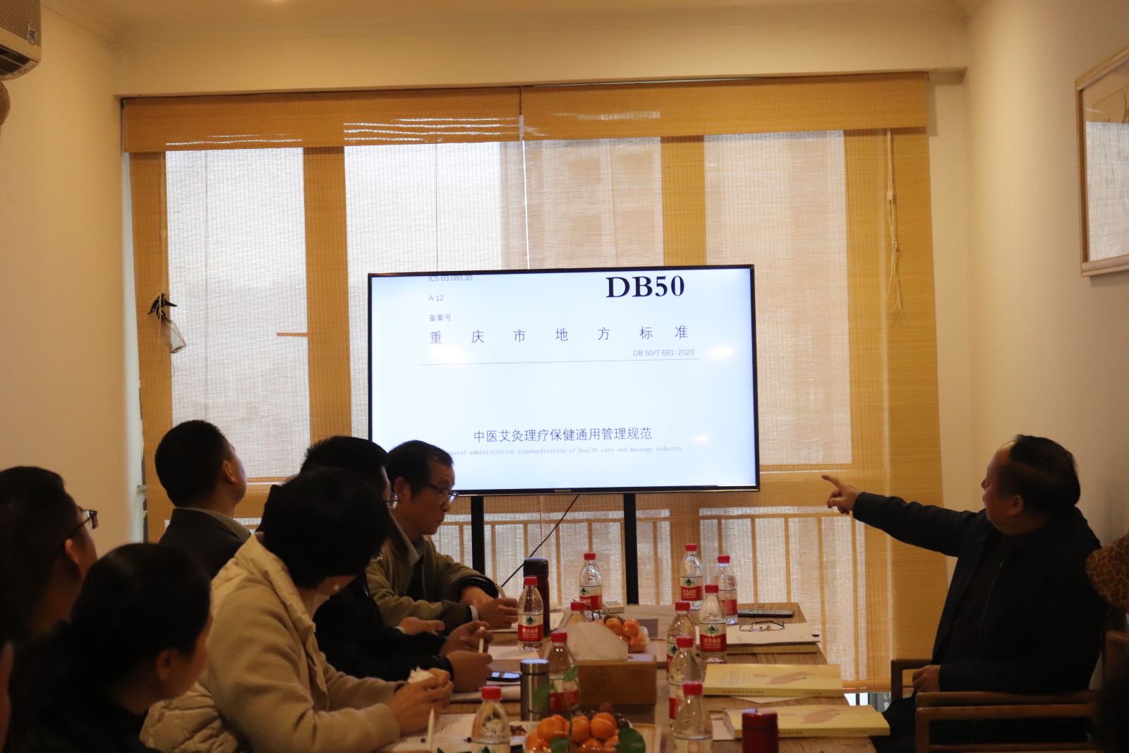 座谈会由协会党支部书记薛建泰主持,会议内容包括:1、讨论制定重庆市保健服务艾炙调理地方标准;2、艾灸调理培训教材的编印介绍;3、明确艾灸调理保健服务地方标准起草人和起草参与企业;4、成立艾灸调理培训教材的编审委员会。