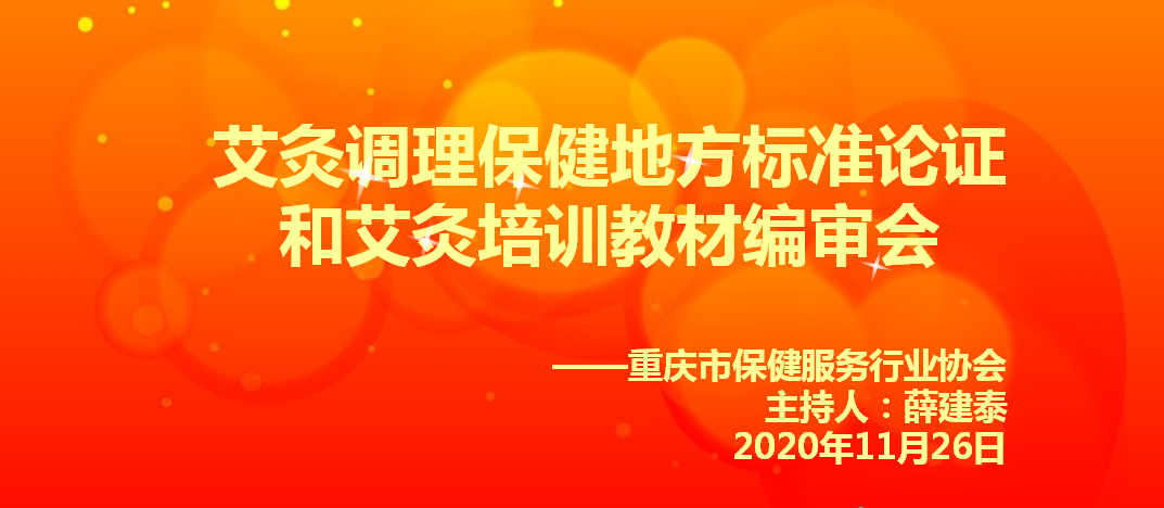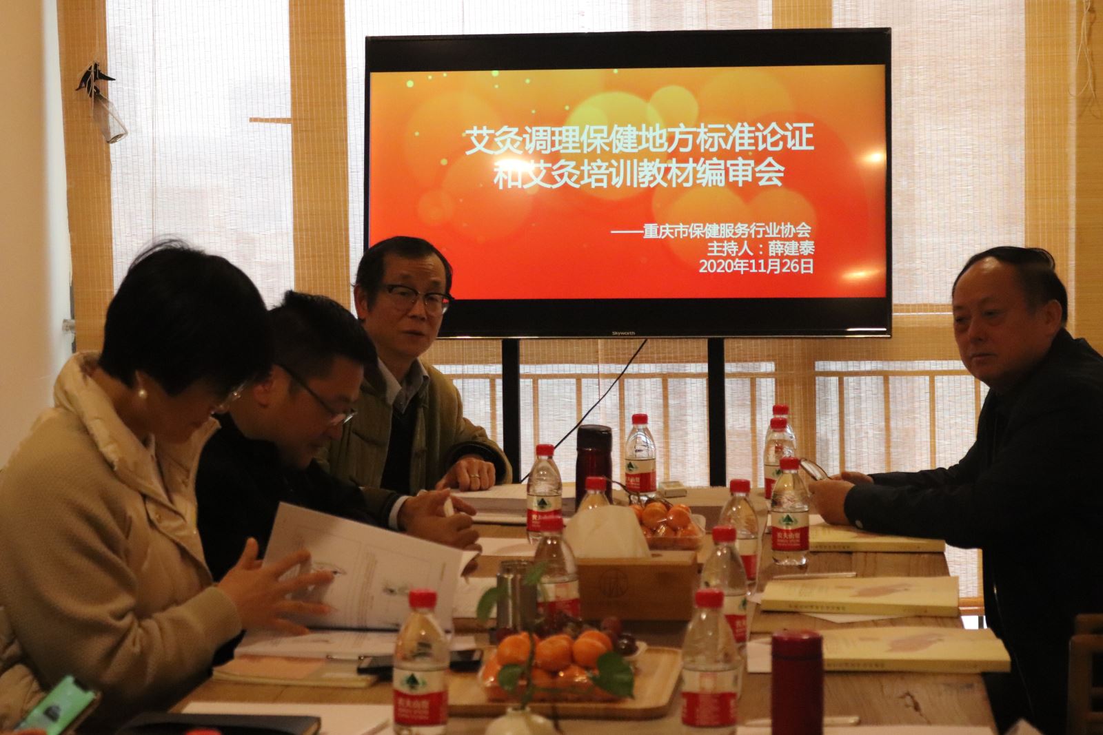 为推进重庆保健服务行业标准化体系建设,促进行业规范发展,11月26日下午,协会组织的艾灸调理保健地方标准论证会和艾灸培训教材编审会暨重庆保健服务行业技能等级证书首发仪式在重庆市保健服务行业协会会员之家召开,出席会议的有:刘光瑞、唐成林、邵勇、陶科、李远枚、秦长利、李采恩、陈平、刘燕红(容通实业端艾堂陈功委派代表)、蒋扬维、李利华、廖家福、赵伟伟、李克玉、胡红玲、曹聪、王莹、陆兴明、胡红玲、薛建泰、马丽等。