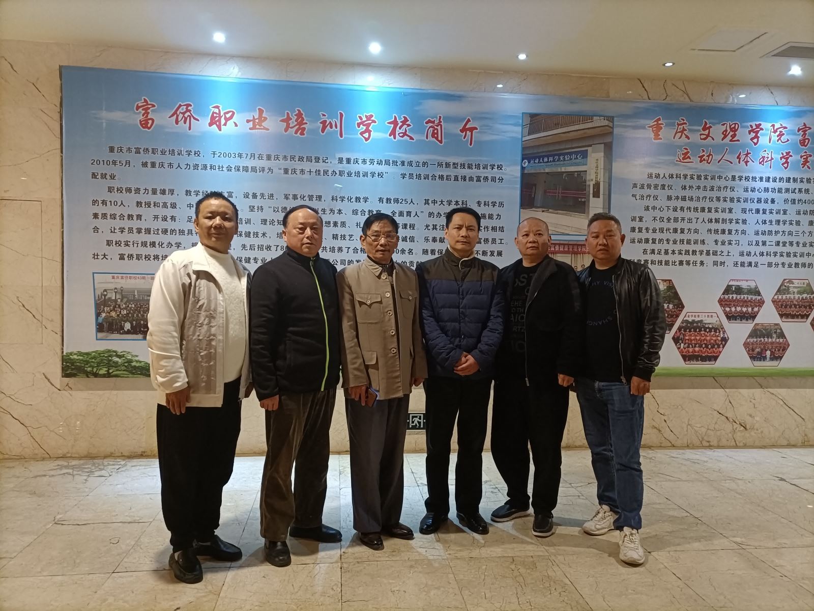 正月初九,会长廖家福、支部书记薛建泰去到重庆富侨在五环大厦的富侨职业技术培训学校,代表协会看望了重庆富侨职业培训学校校长、原协会老会长郭家荣,现任副会长郭家华,家富富侨郭家富,家贵富侨郭家贵,与郭氏四兄弟进行亲切的交流。并感谢他们为重庆保健服务行业作出的贡献,对他们兄弟团结共同致力于行业职业培训的付出表示由衷的高兴和感谢。交谈完毕后,在培训大厅与他们合影留念!