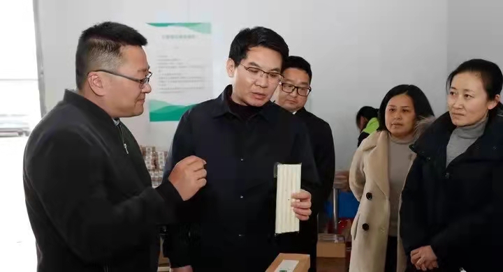 看到车间工人有条不紊地生产,谭庆问是否都是当地村民?怎样计算工资?产品生产出来销路如何等。在得到陈平逐一回答后,谭庆表示“这是个很不错的产业”,他指出,要加大艾草产业发展力度,延伸产业链条,提高产品附加值,发展壮大乡村特色产业。