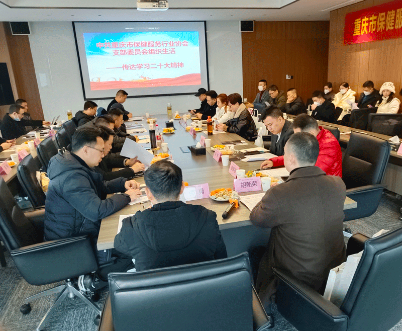 2023年1月15日,协会党支部在沙坪坝金沙天街龙湖光年云端会议厅组织党课,专题学习二十大精神。