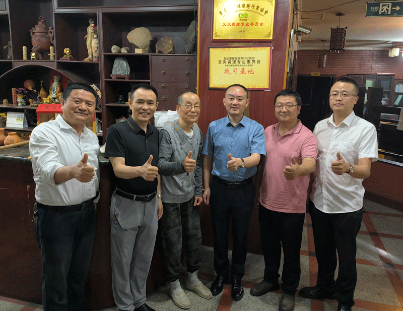 在协会艾灸专委会主任委员秦长利的工作室,胡朝荣会长介绍了协会今年的重点工作和推进情况,并就协会艾灸专委会的建设与秦长利老师进行了深入交流。秦长利老师从事艾灸行业30余年,致力于艾灸技术和灸具研究,1994年他发明的霸王灸灸具在美国拉斯维加斯获奖。他向会长介绍了他编写的艾灸培训教材,并建议协会今后在艾灸产业文化推广和人才技术再培训上为艾灸行业赋能。